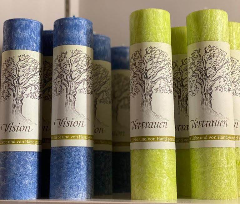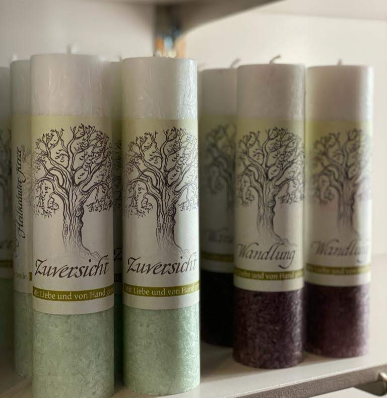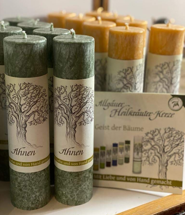 Allgäuer Kräuterkerzen werden liebevoll und von Hand in einer kleinen Manufaktur in den Allgäuer Alpen gegossen. Jede Kerze besteht aus 100% pflanzlichem Stearin und einer, auf das jeweilige Lebensthema abgestimmten Mischung aus Pflanzen, Harzen, Heilkräuteressenzen, ätherischen Ölen und Tinkturen. In der Serie "Geist der Bäume" finden sich Themen wie: Vision, Vertrauen, Zuversicht, Innerer Reichtum, Wandlung, Herzenswärme, Ahnen, Weisheit, Wertschätzung und Verbundenheit.